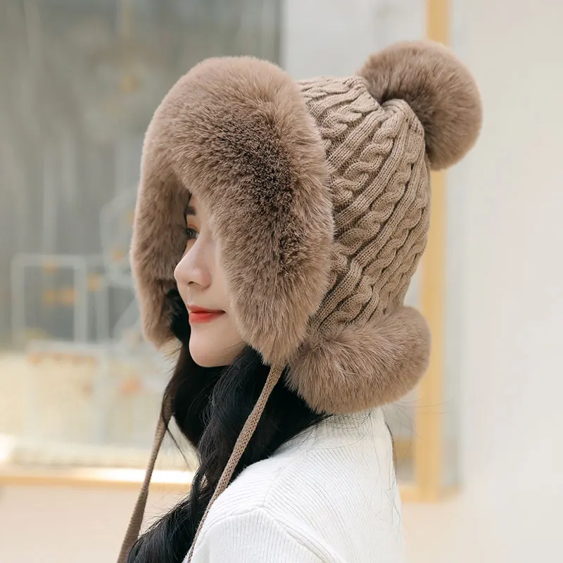 Buy Hair Ball Hat Women Winter Plus Velvet Thickened Warmth Cycling Cold Proof Ear Protection Knitted Woolen Cap Autumn And Winter One Cap Knit Hat Wool Hat Fordeal Winter Thick Outdoor Earflap Warm